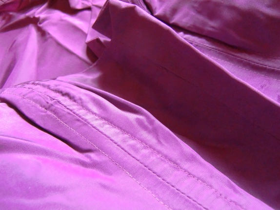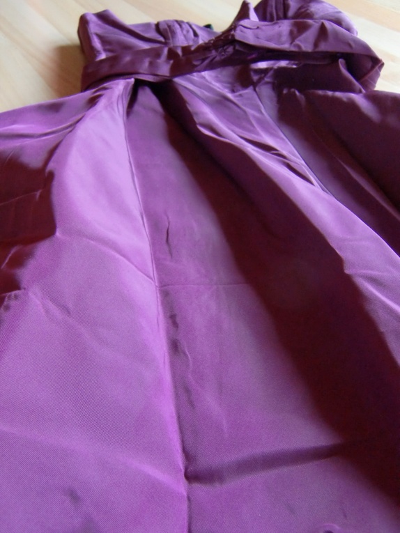 Pen mørk lillafarge. Har også "belte" i samme stoff.