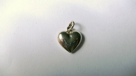 Hjerteanhenget er fra 1976 og er i 925 sølv.Lengde med opphengsring 1,8 cm,bredden er 1,3 cm Anhenget er brukt.