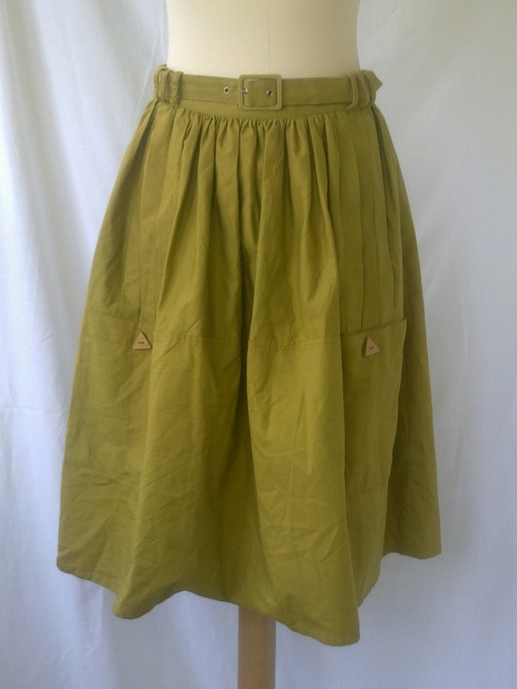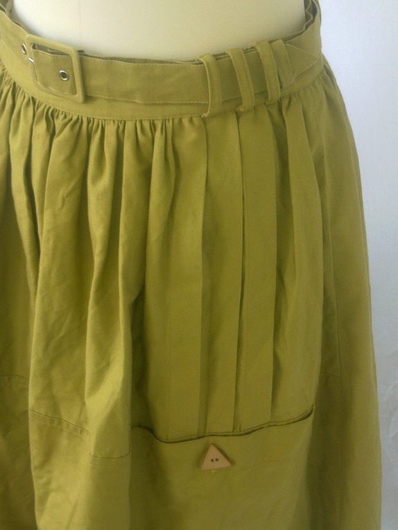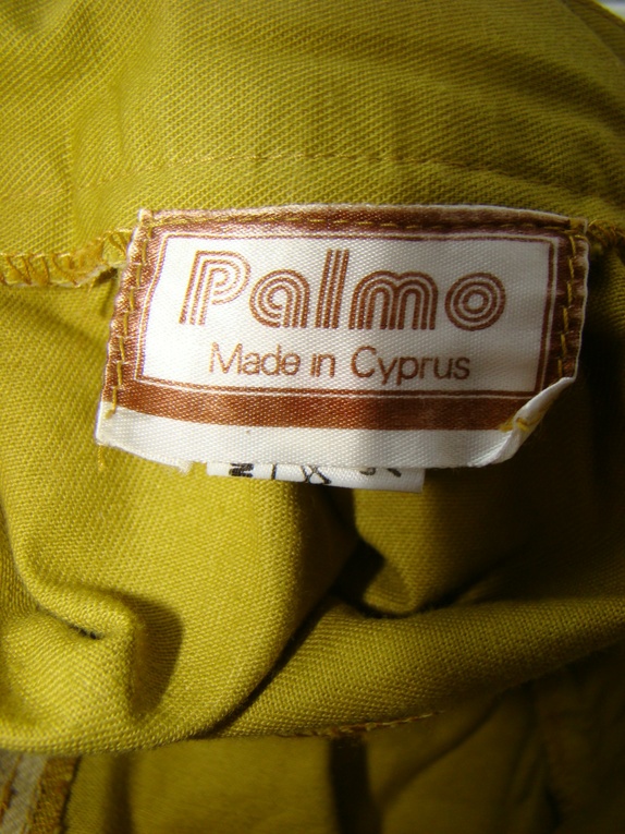 2 store, dype lommer med unike treknapper. Belte i samme stoff. 100% bomull. "Palmo" ( Made in Cyprus). Str 38.