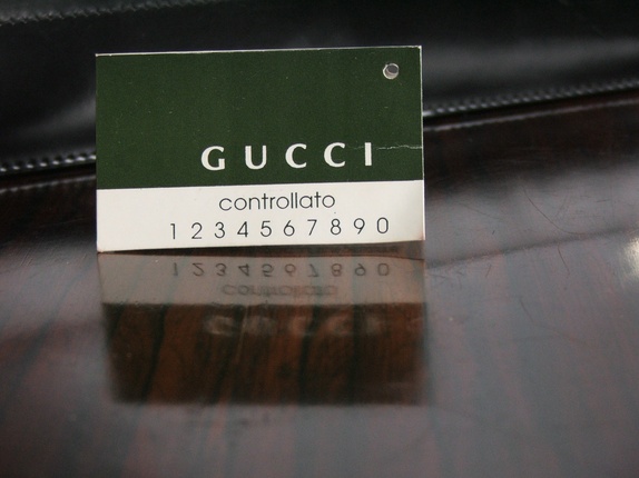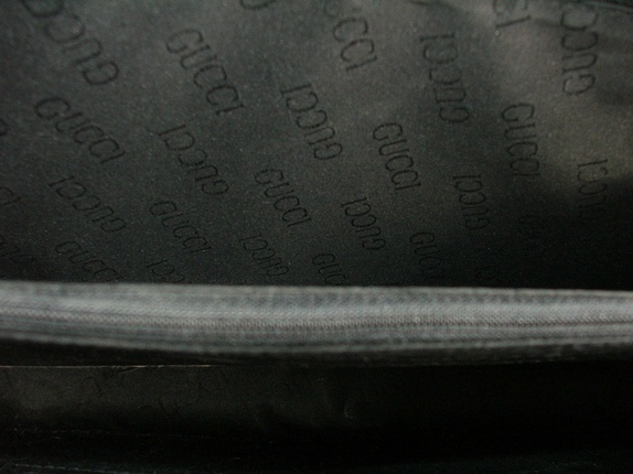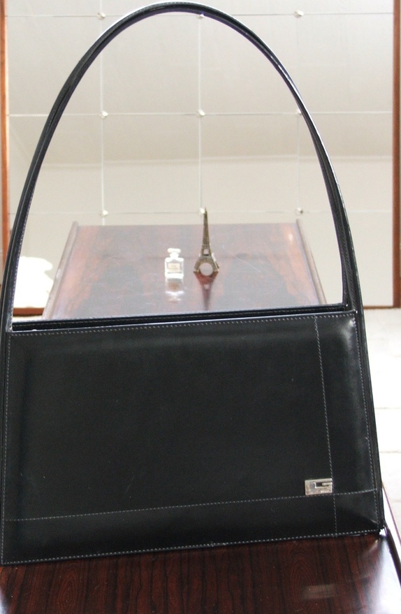 Stilig og tidløs sort veske merket Gucci fra ca.70/80 tallet.Glidelås lukkning med bla.liten smekker detalj til glidelåsfestet i siden.Kontrollnummer.I topp stand.