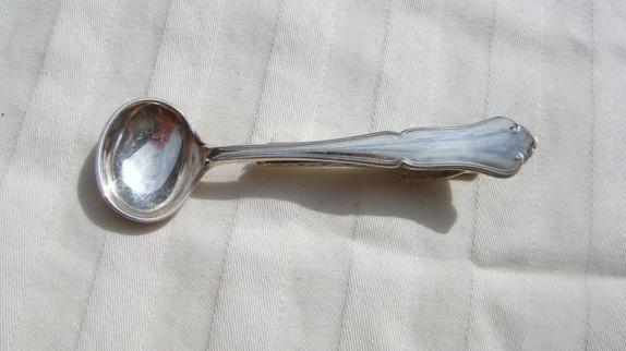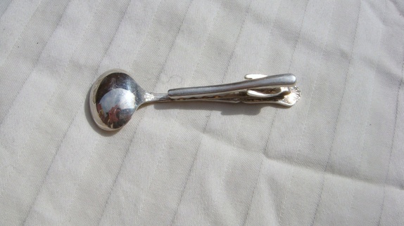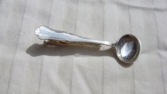 Slipsnålen er i 830 s sølv ,mønsteret på nålen er Mertha.Den er laget av karskskje og har krokodilleklype bak.Lengden er 6,7 cm. Selges nye hos gullsmeden for 305,-