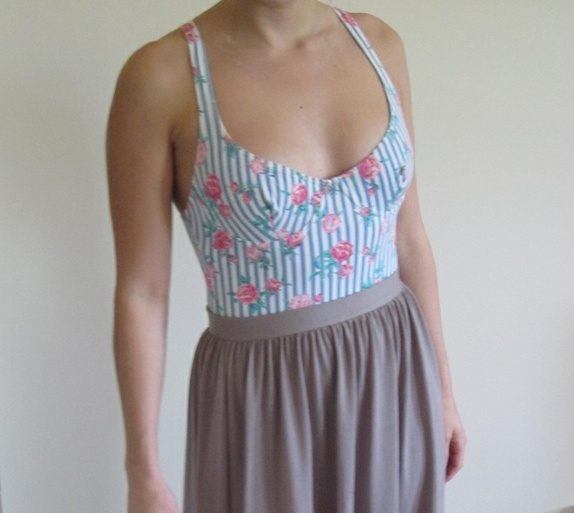Trolig vintage (80-tallet) blomstret body/badedrakt i bomull