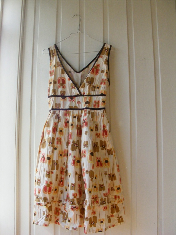 Midje (litt høy): ca. 64 cm, men fordi den har elastikk i ryggen kan den strekke seg ganske mye, så dette er en kjole for medium eller large damer.