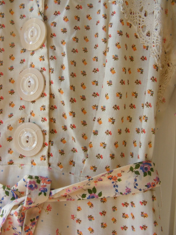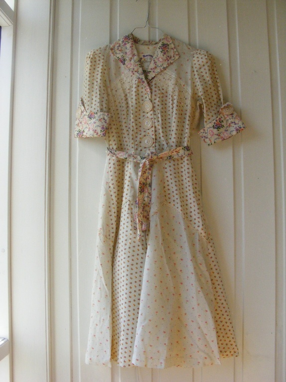 Vintage 70-tallskjole i myk bomull med tre ulike blomstermønster,