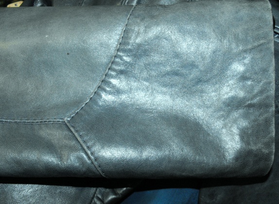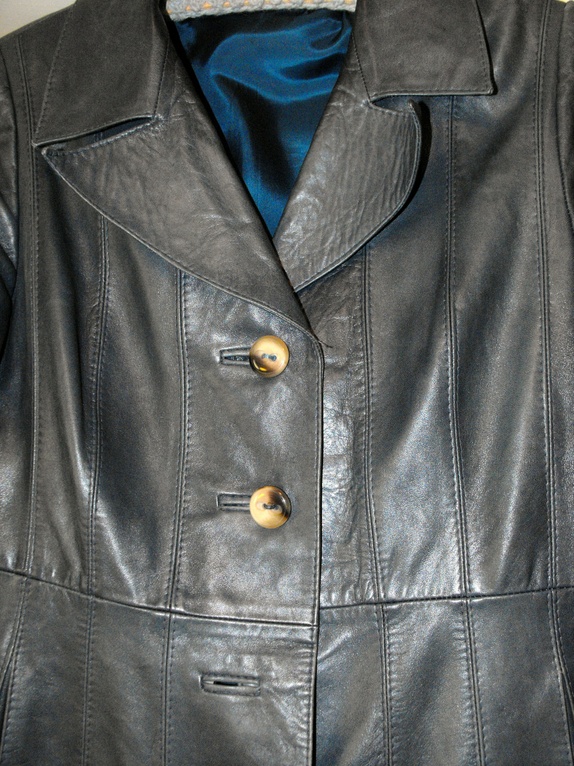 Mørk-petrolfarga skinnkåpe