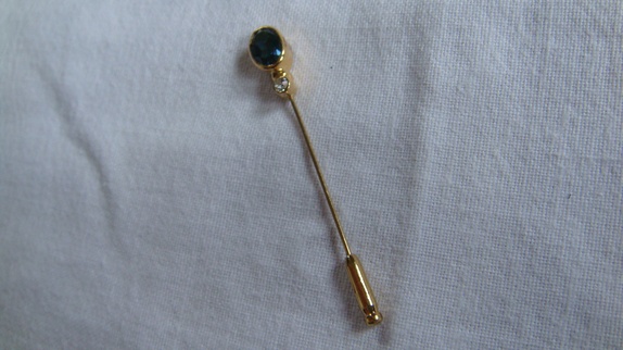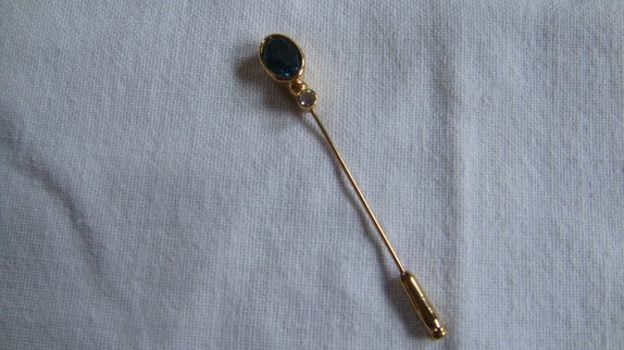 Nålen er fra siste del av 70 tallet.Den er 5 cm lang og har en nydelig blå farget og en liten blank smykkesten.