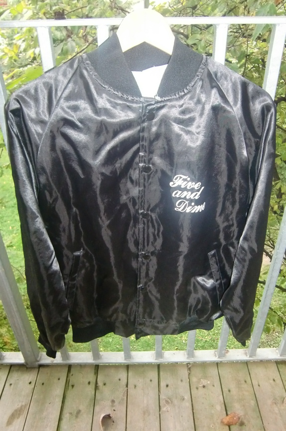 Bowlingjakke i svart sateng str L. Fin til jeans eller kjole