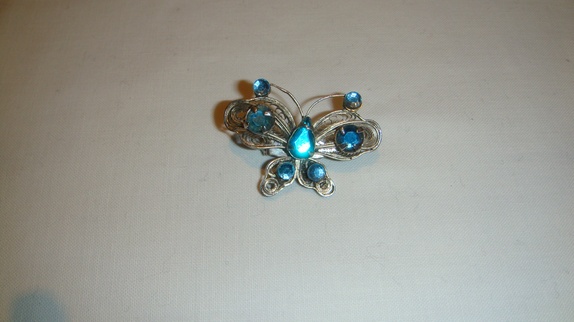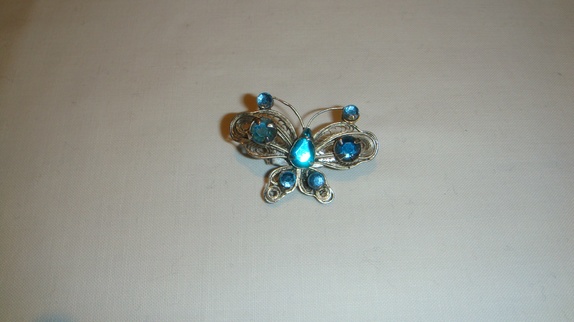 Sommerfugl nålen har blå stener.høyden på nålen er 3cm,bredden er 4 cm.