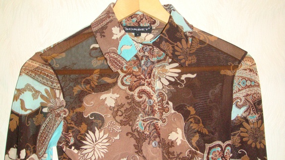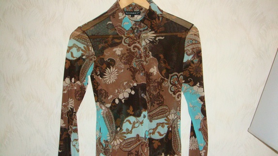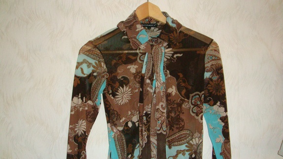 Blusen er i størrelse S.Til blusen følger det med et løst skjerf.Laget i Polyamid