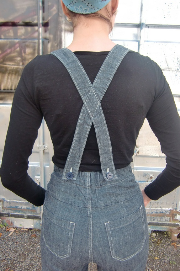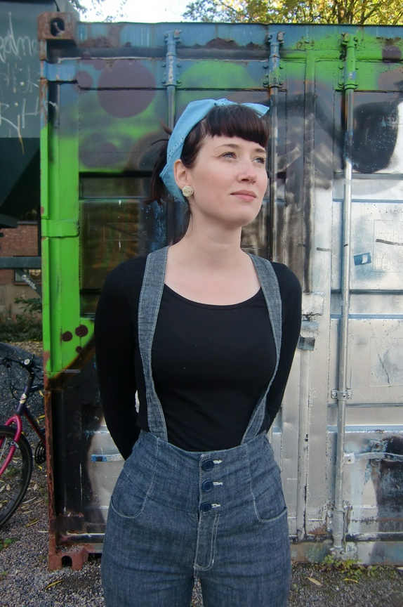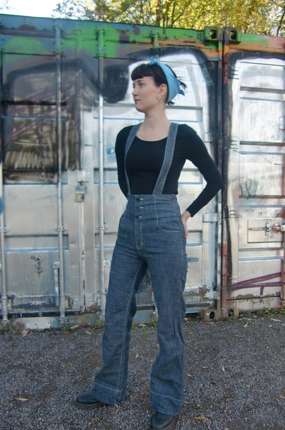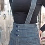 "For Me" Snekkerbukse med høyt liv 98 % bomull, 2 % lycra, god stretch,justerbare seler, festes med knapp på innsiden