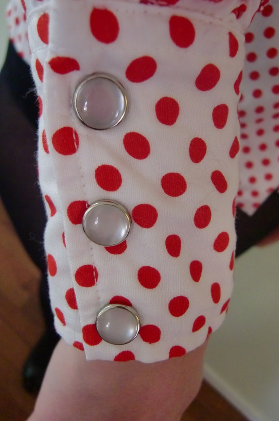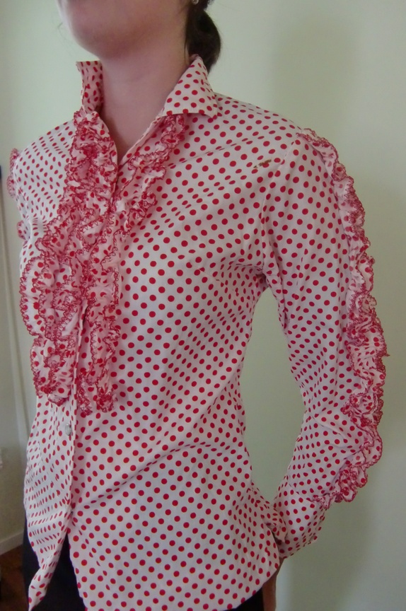 nydelig vintage westernskjorte i hvit og rød, flotte detaljer, str S, liten flekk på høyre side
