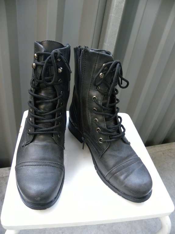 Kjempefine boots i kunstskinn. Mørkegrå. Str 39. Brukt én gang. Glidelås i siden, og snøring foran.