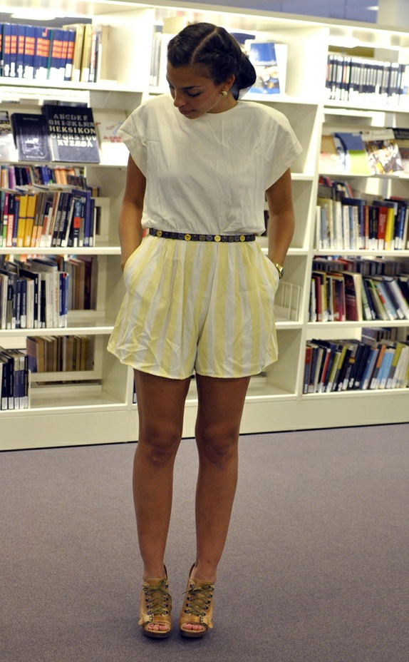 This jumpsuit from the 70's are so adorable. It has the cutest pockets. White top together with the yellow and white stripes are the best combination.