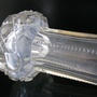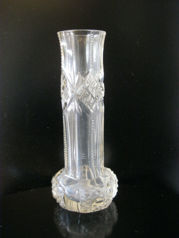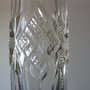 Nydelig skjærslipt vase i klart glass, 17 cm høy.Bred rund sokkel og smal rett hals. Ukjent opprinnelse og alder, men antagelig fra starten av 1900. Små aldersmerker.Ved kjøp av flere ting er frakt umulig å forutsi, antagelig 70 kr, maks 130 kr.