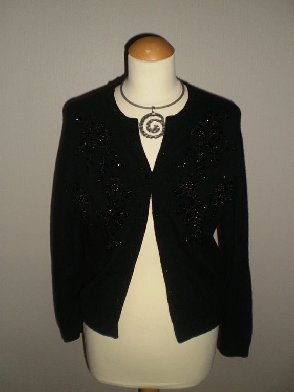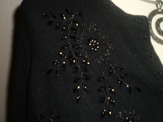 Denne jakken er veldig gammel.. alder noe usikker. Bolen er foret m silkefor. og det er prodert motiv m perler på begge sider foran.Str 36/S