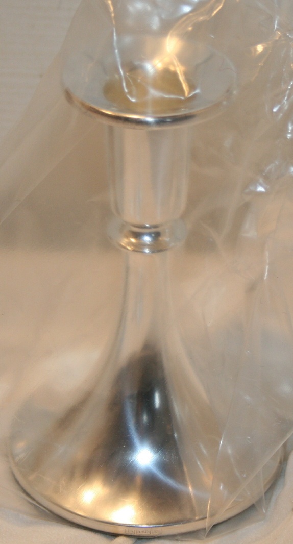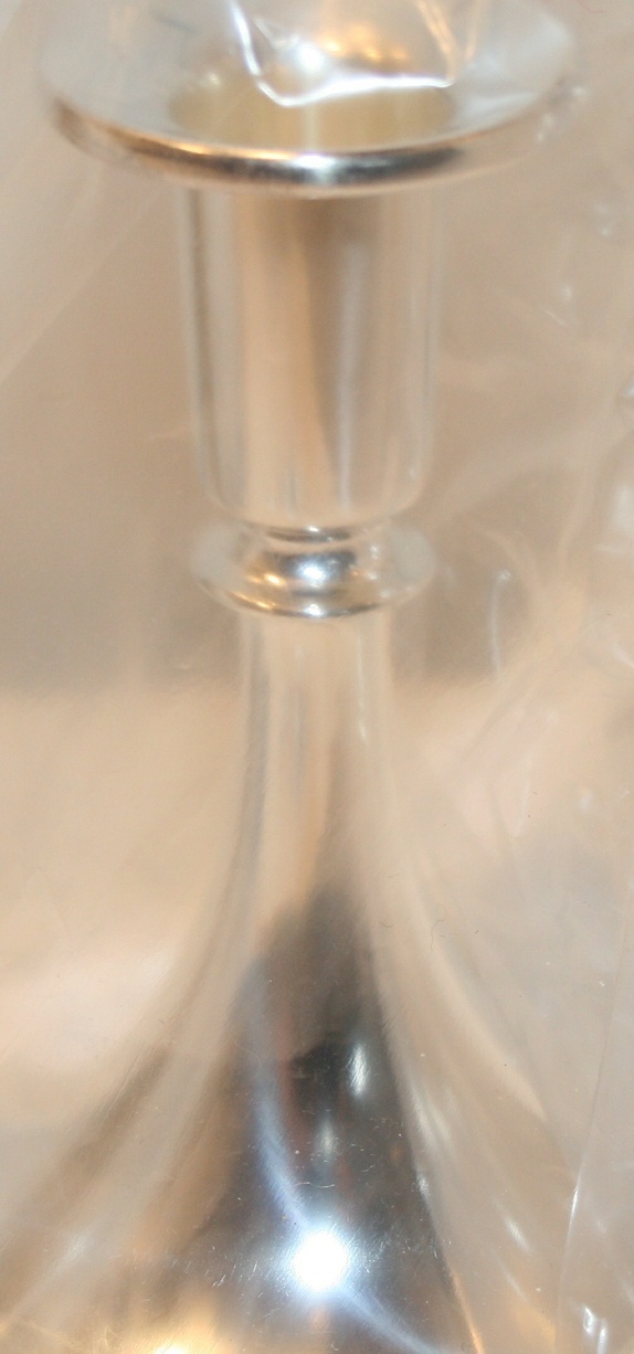 11,5 cm høye og sokkelen er ca 7,3 cm i diameter. De ligger i original plastpose og i tøypose original fra David Andersen.