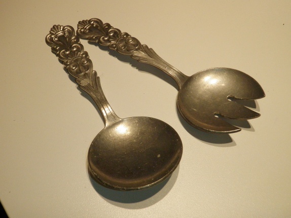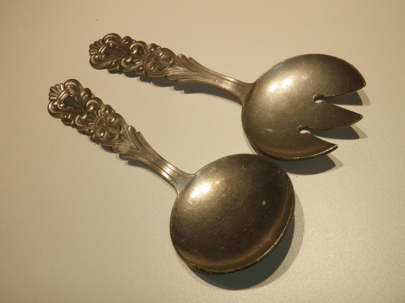 Morsomt salatbestikk i tinn
