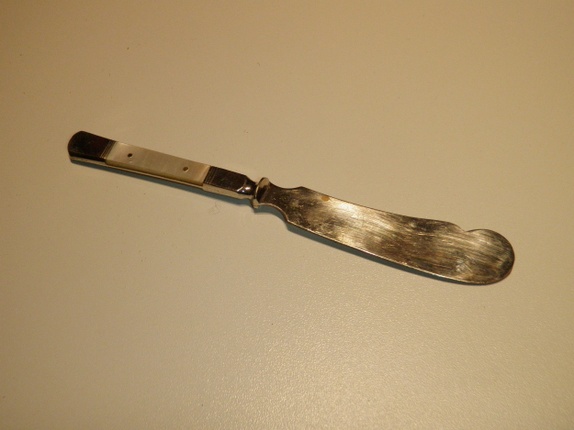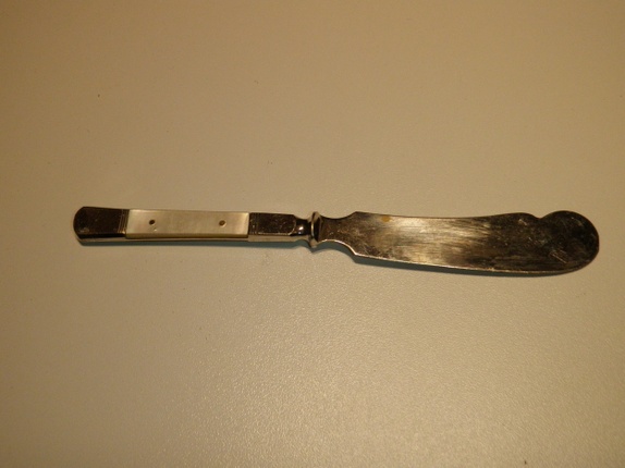 Gammel smørekniv med perlemor på skaftet