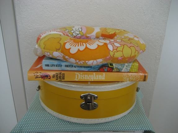 Søt fargeglad vintage barnekoffert i gult. Fargen er klarere gul enn bildet tilsier.