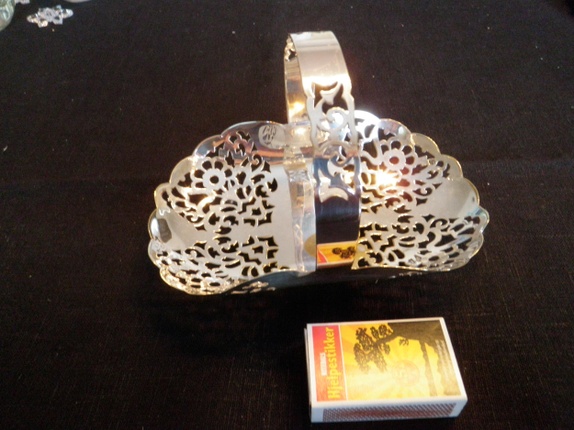 Det er en flekk på skålen som det ikke går å pusse vekk, men den blir skjult av heklebrikken