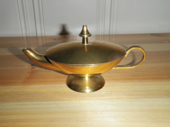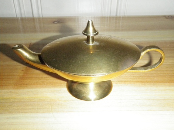 Liten Aladdinlampe i messing.Til pynt eller til å ha småting i.Nå nedsatt - tidligere pris kr 75,-