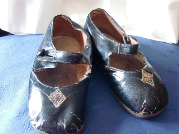 Antikke Barnesko i skinn/lær fra 1910-20.