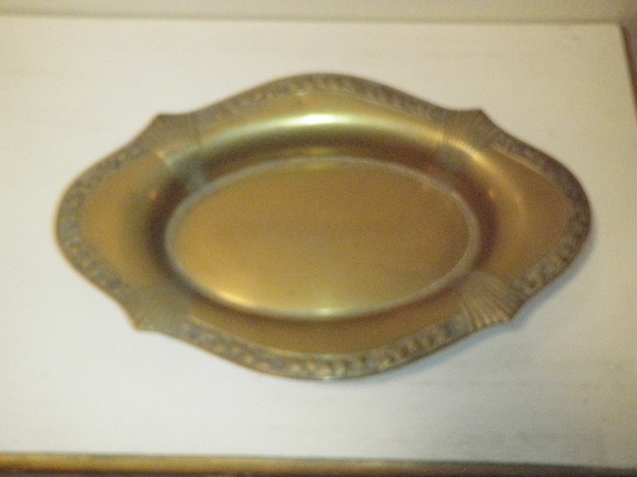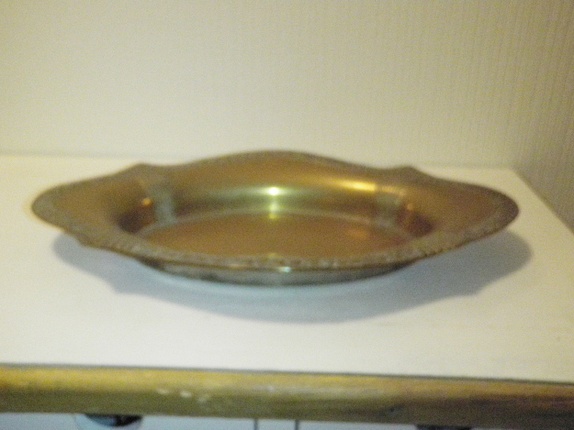 Fat/skål m/inngravering fra 1920Kobberfarget slitt, ser ut som det kan ha vært forsølvet