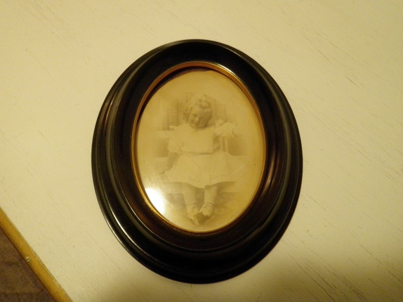 Liten oval ramme med gammelt barnebilde(bildet kan selvfølgelig tas ut)Høyde 15 cmTil å henge på veggen