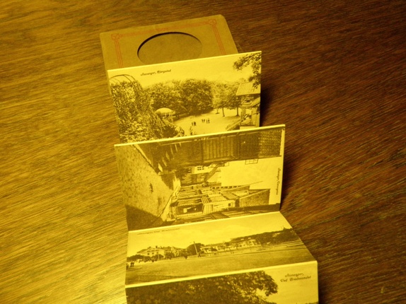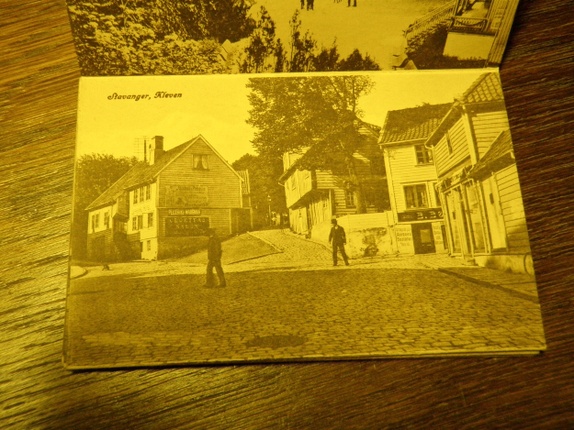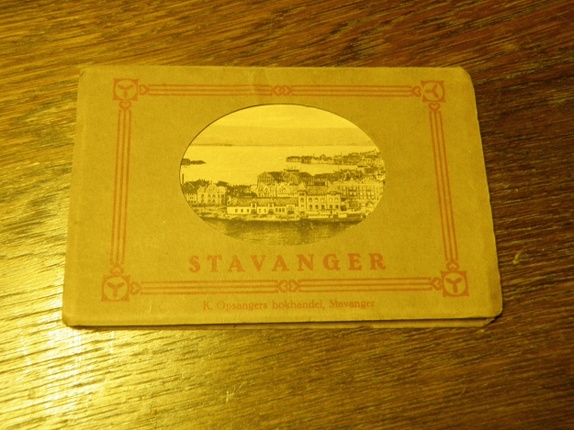 "Trekkspillmappe" med gamle postkort fra StavangerK. Opsangers Bokhandel, Stavanger