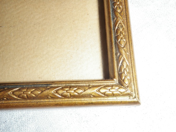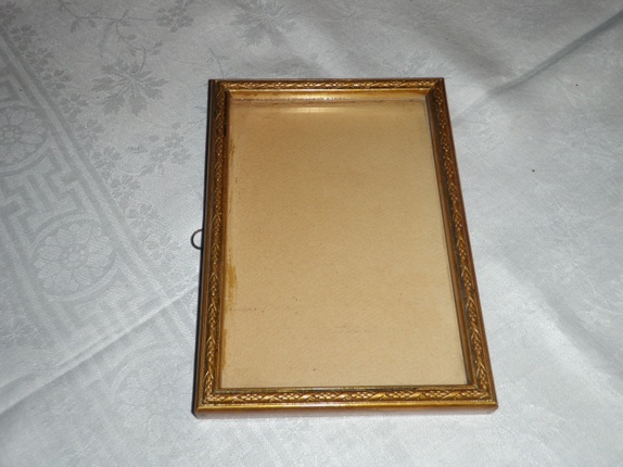 Gammel fotoramme / gullmed glass og oppheng for vegg på langsiden20 x 14 cm