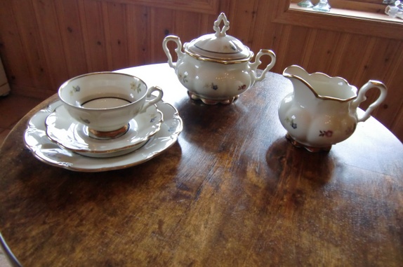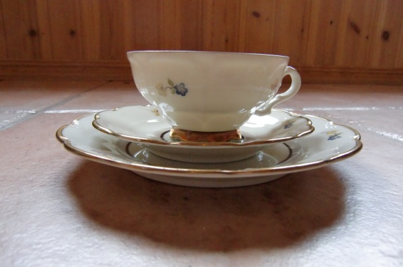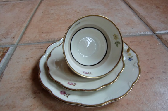 Til 11. Komplett m/ asjett og skål, sukkerkopp og fløtemugge.