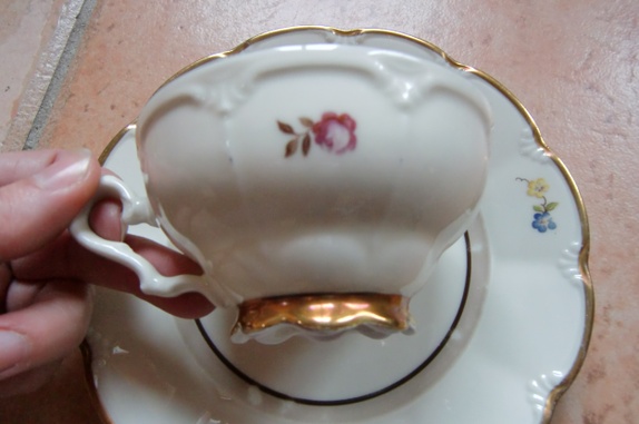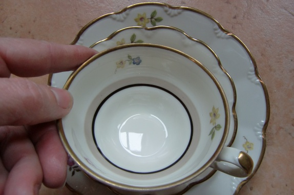 Bruksslitasje,/ noen asjetter har svakere mønster/farge noe avslitt. Men nydelig for det! Se bilder. Tom. mønster inni koppene!