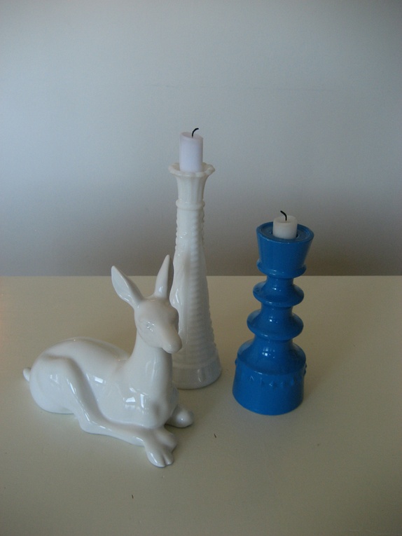 Av rekvisittene er den blå lysestaken og rådyrfiguren også til salgs.