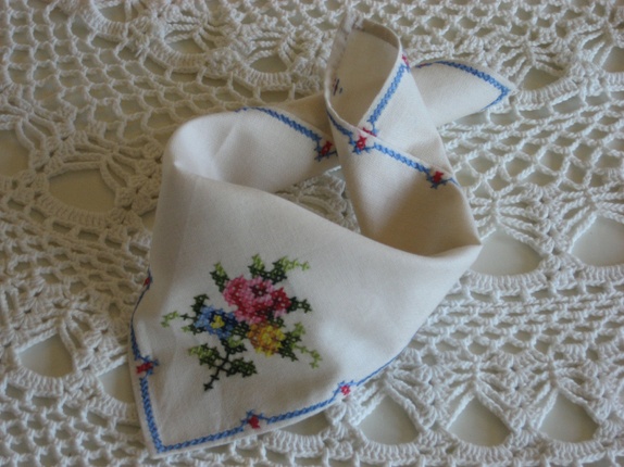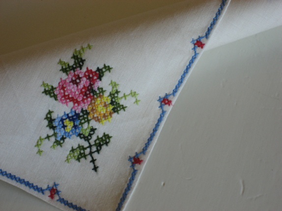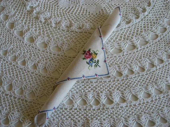 Søte, romantiske tøyservietter med broderi. 6 stk.