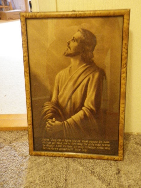 Gammelt Jesusbilde med tekst fra Joh. 17,24Med glass og rammeRammen er hel