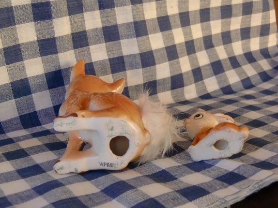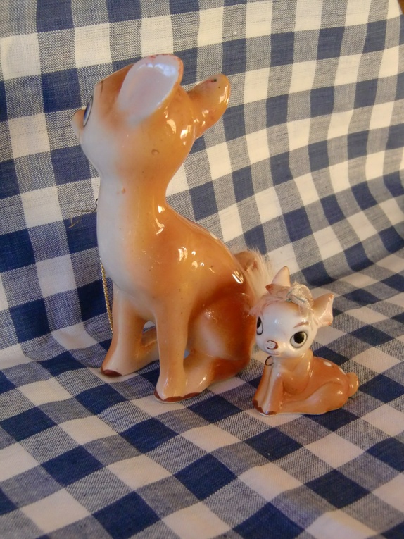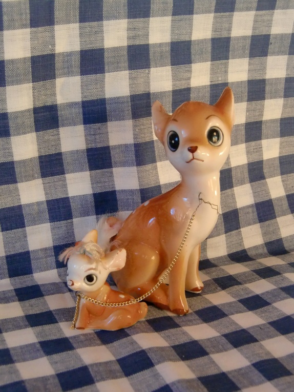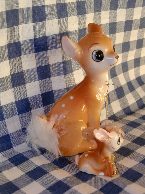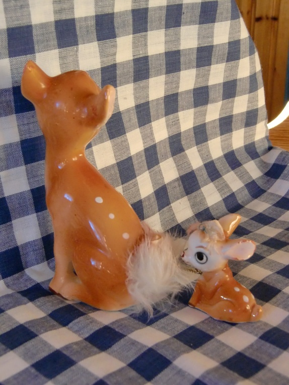 Så søtt sett m Bambimamma og barn. Dusk på bambimammas ende, trolig av kanin? Sløyfe på bambibarnets hodet!