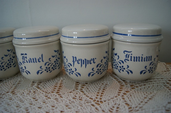 Søkeord: blå, hvit, gammel, gamle, skrift, kjøkken, shabby chic, vintage,oppbevaring, krydder, krukker, krukke, skål, skåler, urne, urner, lokk, krukke med lokk, kryddersett