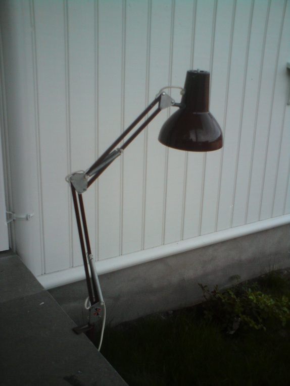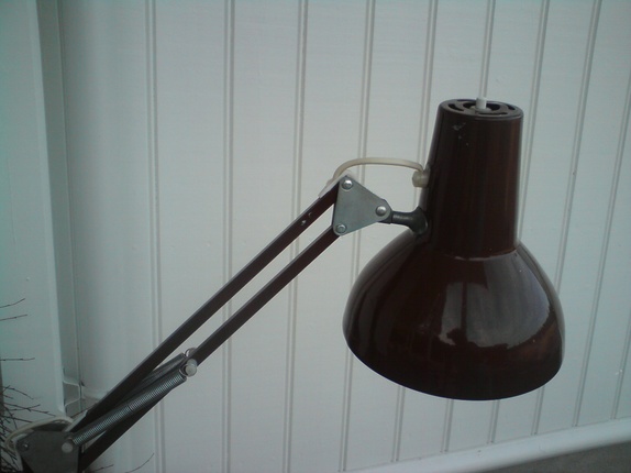 Brun retro skrivebordslampe fra verksted.Med bordfeste.