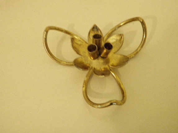 Lysestake til 3 tynne blomsterlysMessingDiam. Ca 10 cmArt 010