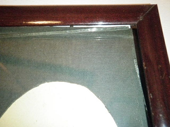 Gammel treramme til å henge på veggen.Med glass og oppheng12 x 22 cm