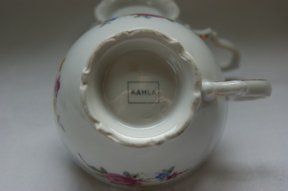 Disse koppene er bare helt utrolig vakker. De er tynne i godset. Nydelige roser på. Legg merke til den lille stetten på koppene. Under er de stemplet med KAHLA.