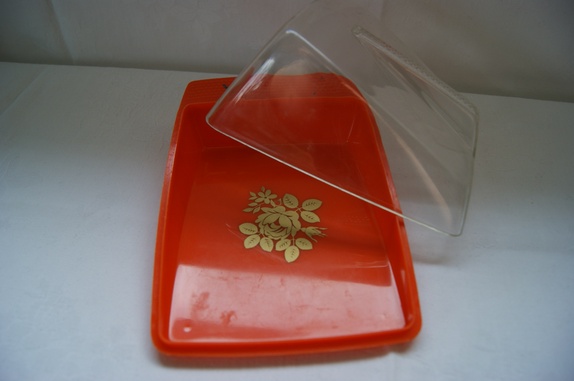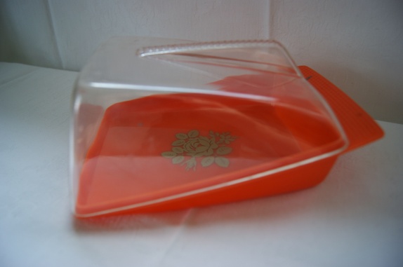 Søkeord: retro, orange, oransje, plastikk, oppbevaring, kjøkken, boks