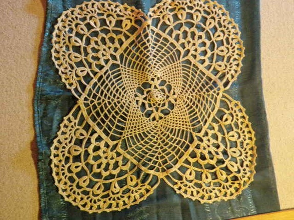 Koselig heklebrikke i beigeHeklet i litt tykt garn - fint håndarbeid!