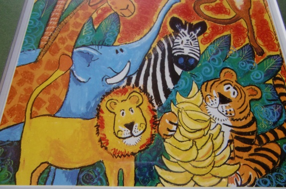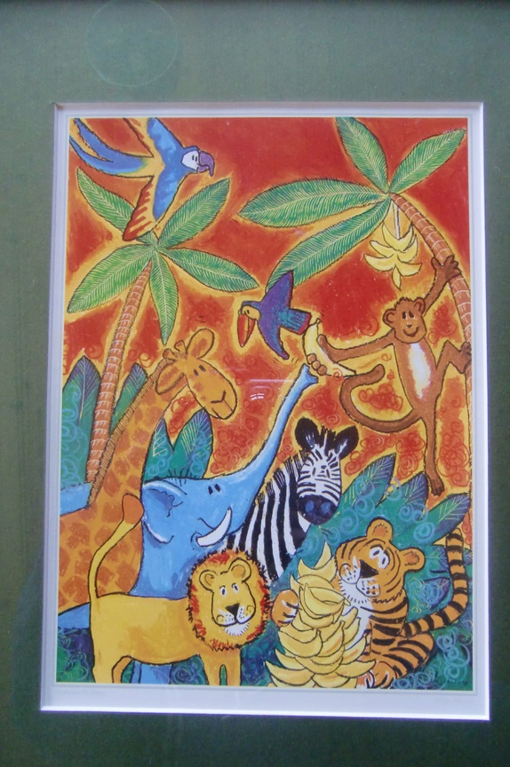 Barnebilde "Banana Picking" 45,5x36cm. Kan hentes i oslo.