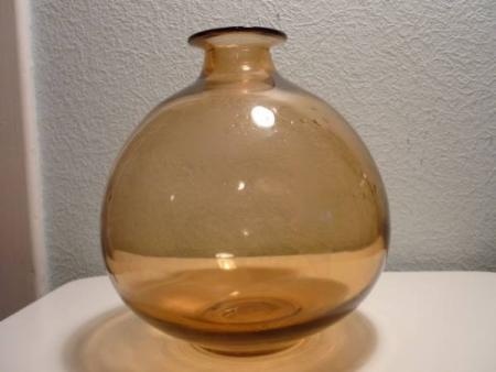 Ikke stemplet, men jeg antar at dette er en 2. sortering fra Plus Fredrikstad. (Ikke så fullkommen som den lignende blå .) Den har noen vannrette produksjonsstreker i glasset, noen luftbobler og et par prikker, PS!Vasen var våt inni ved fotografering