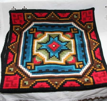 Pute i retrostil. Strameibroderi.Friske, klare og fine farger. Hel og fin,svart bakstykke.37x37 cm.