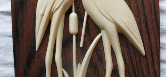 Veggbilde fra 1950-60 tallet. Liten skade. Se foto. 27,5 x 11 cm.