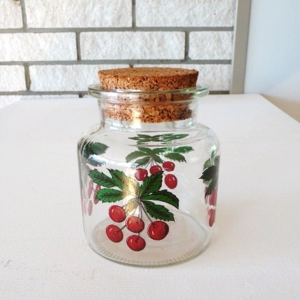 Retro italiensk glass, med kirsebær. Rommer: ca 7dlStrøken.