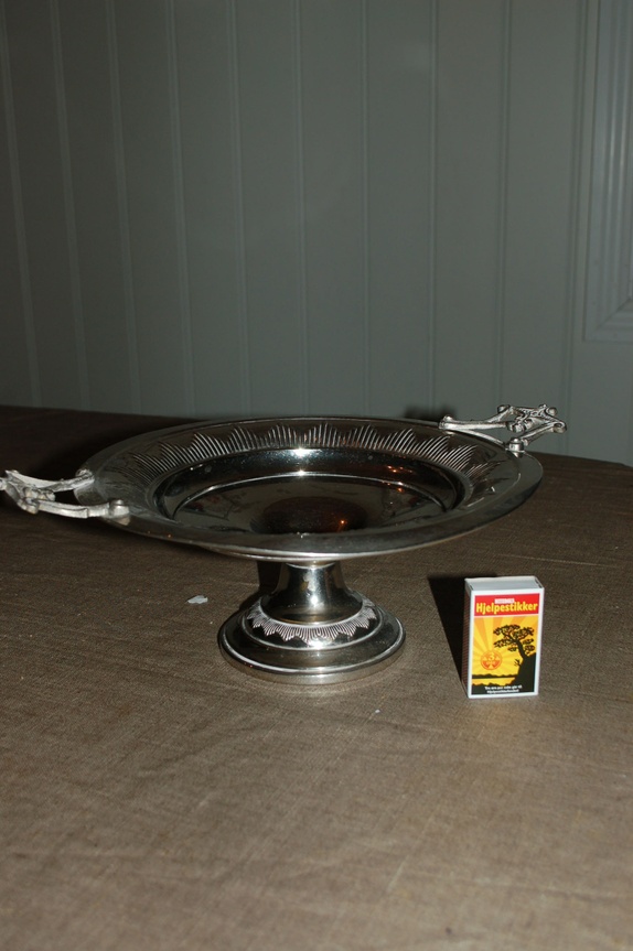Fat i jern fra Enköping i Sverige. Noen skevheter, men et flott og dekorativt fat som også blir fint med en glassklokke på.