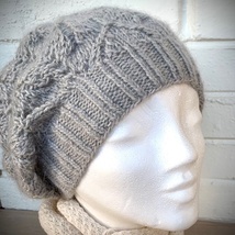 Hjelmlue strikket i Alpakka Fur Small Dame/ Barn